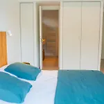 Bathroom facilities also include a bath, a separate toilet, and a shower. A dryer and towels are included for added comfort.